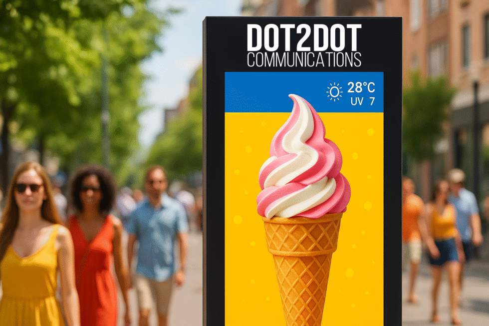 - Temperature-driven promotions: Automatically display ice cream or cold beverage ads once the thermostat climbs above your chosen threshold (for example, 28 °C).